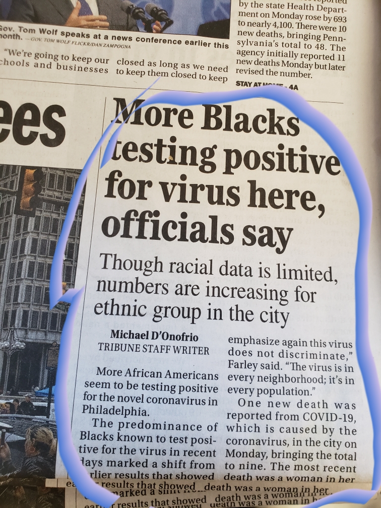 Michigan reports black people make up disproportionate amount of coronavirus deaths & Philadelphia writes more blacks are testing positive for the