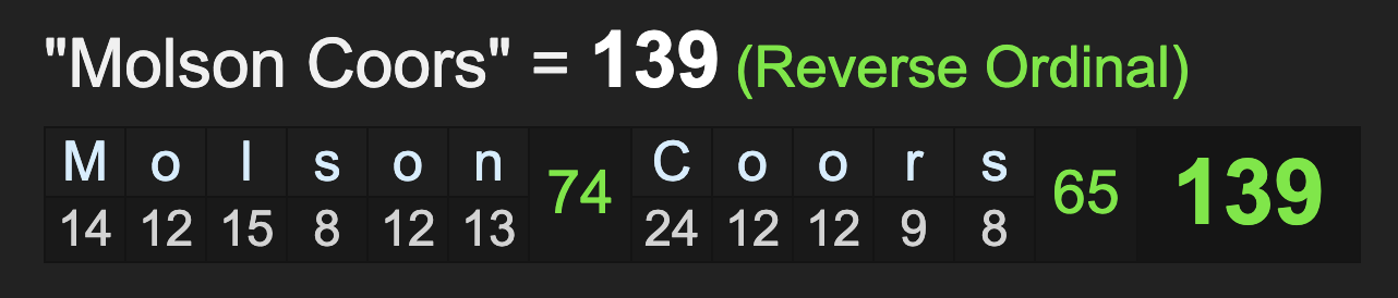 This event also comes on the 139th day of the company being named Molson-Coors, as it was previously Miller-Coors.
