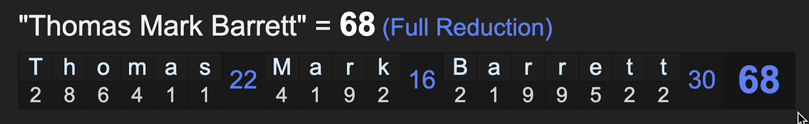 His full name sums to 68, going with date numerology. 2/26/2020 = 2+26+20+20 = 68