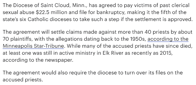 The Diocese of Saint Cloud sums to 119, same as ‘George Floyd’. This story broke with the George Floyd news and protests.