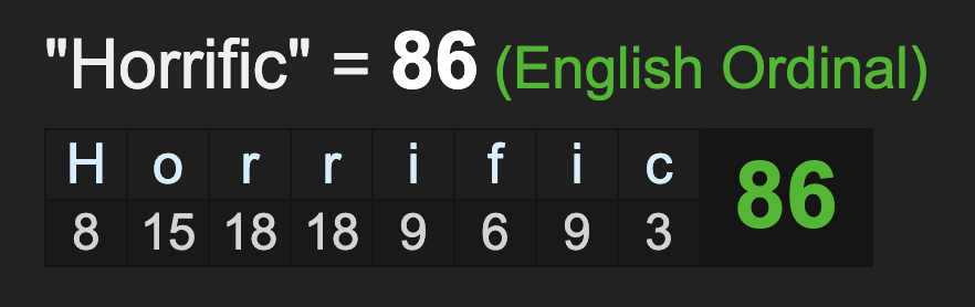 As for the emphasis on ‘horrific’, the word connects to ‘coronavirus outbreak’, summing to 86.