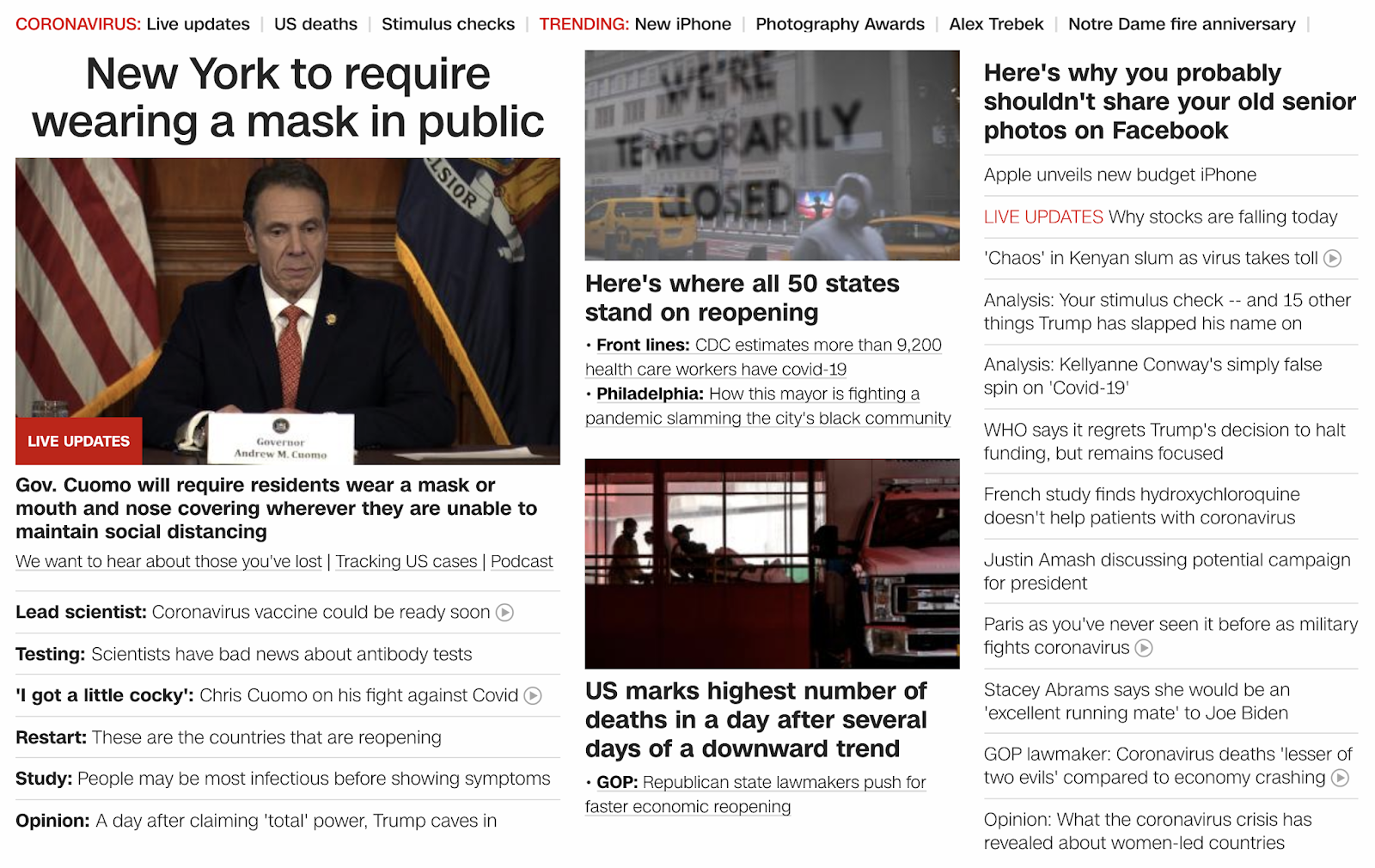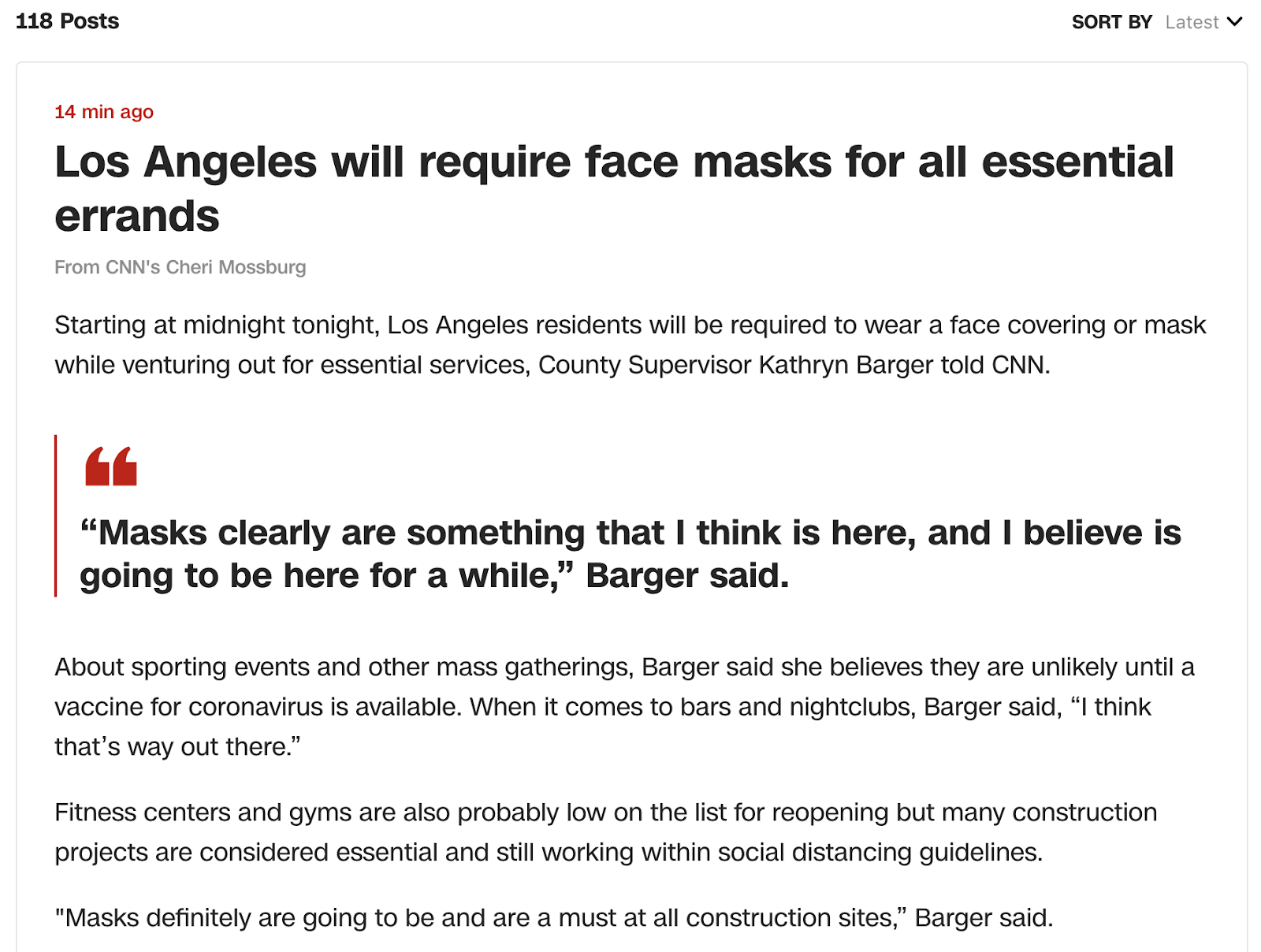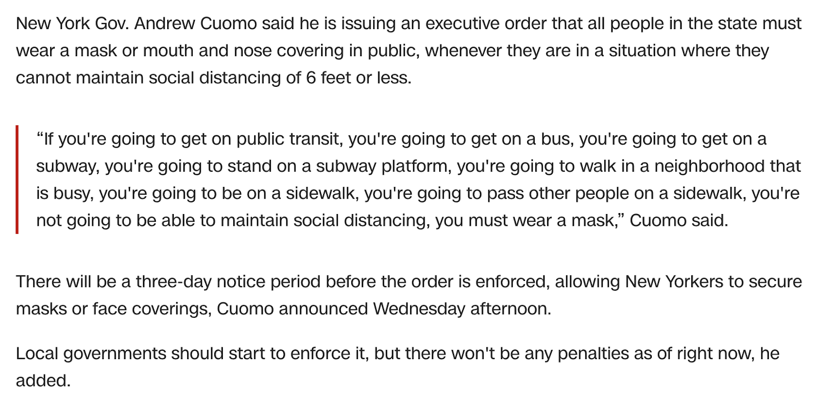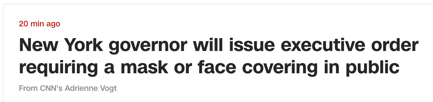 New York & Los Angeles to require face masks / coverings, April 15, 2020 news
