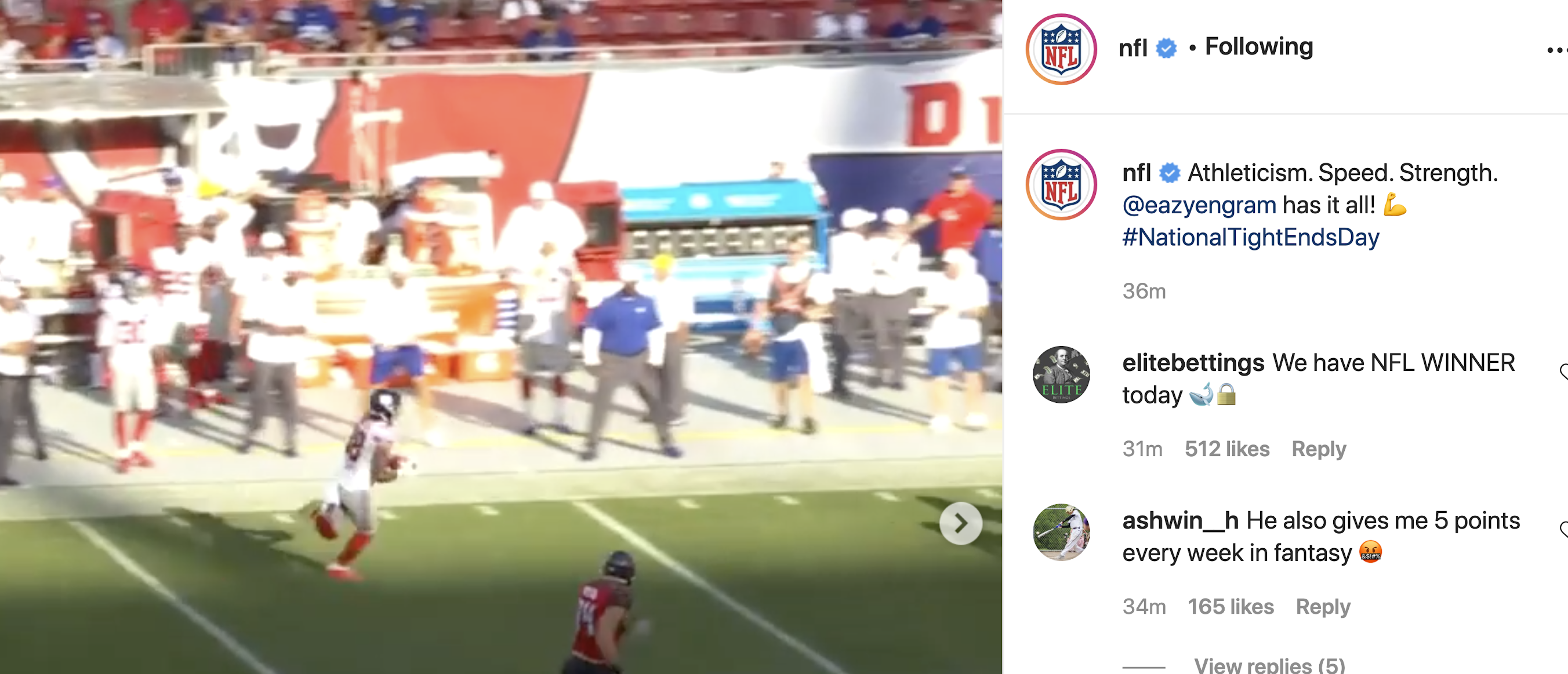 NFL Instagram promotes Evan Michael Engram highlight before TNF, the date of Mr. 88, Donald Trump vs. Joe Biden, in the last presidential debate, October 22, 2020