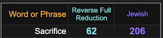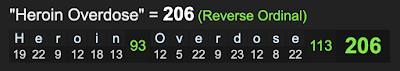 Further, ‘heroin overdose’ sums to 206, not far off from 26, and matching ‘sacrifice’.