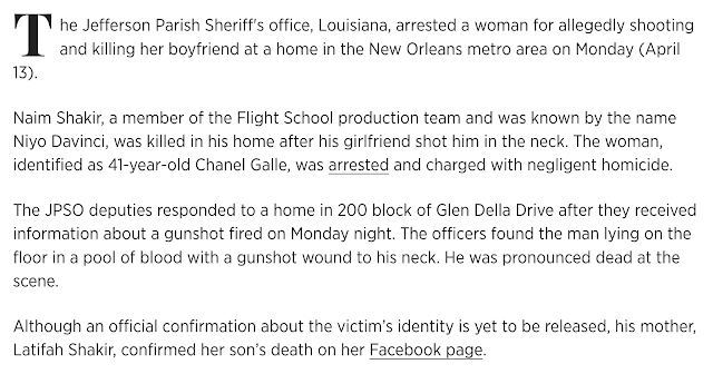 Niyo Davinci, Flight School producer, allegedly shot dead by his girlfriend, April 13, 2020