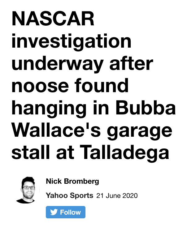 Noose found in Bubba Wallace’s garage at Talladega, June 21, 2020
