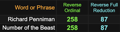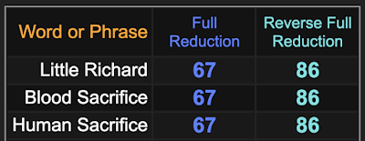 Notice how Little Richard’s performing name sums to 67 an 86, like ‘blood sacrifice’.