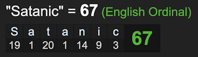 The 67 connects to ‘Satanic’ as well, syncing with ‘number of the beast’.