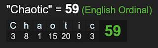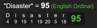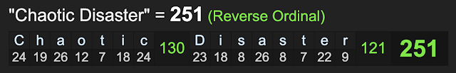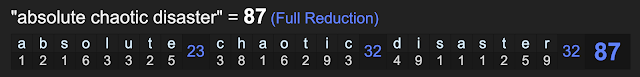 When you decode the phrase ‘absolute chaotic disaster’ it sums to 87, go figure.
