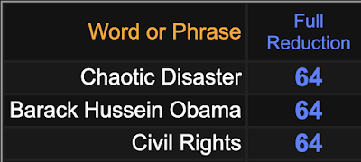 Together, the phrase sums to 64, like ‘Barack Hussein Obama’ and ‘Civil Rights’.