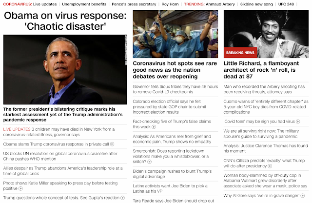 Obama calls Trump’s coronavirus response ‘chaotic disaster’, front page news the same day as Little Richard’s death, May 9, 2020