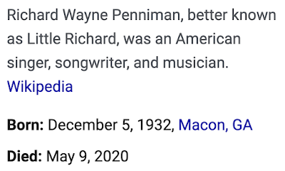 Little Richard died 5-months and 4-days after his birthday, on a 54 date numerology.