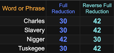 *Slavery = 30 *Nigger = 30 *Tuskegee = 30