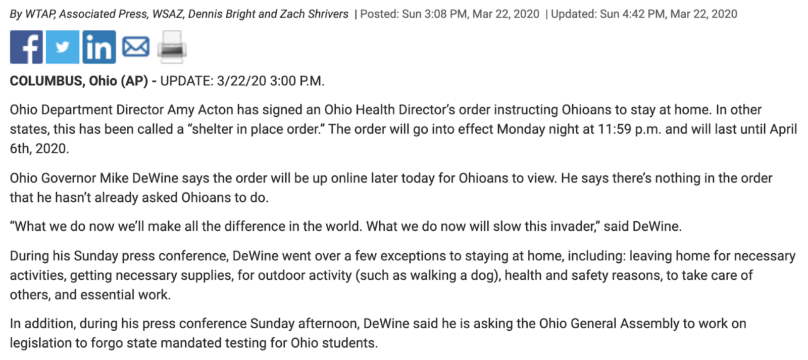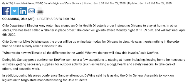 Mike DeWine joined the list of governor’s locking down his state. Notice he is the 70th Governor of California.