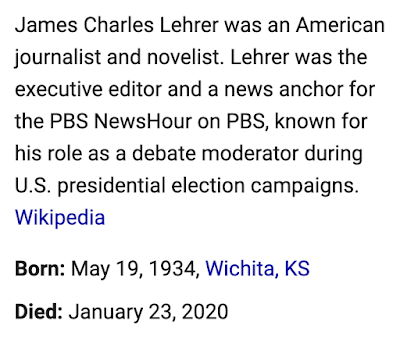 PBS NewsHour anchor Jim Lehrer dead at 85, January 23, 2020