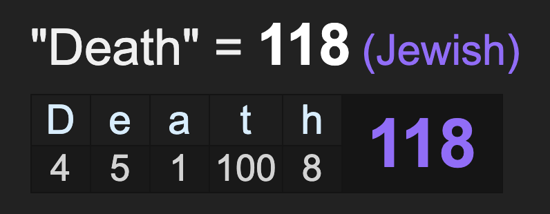 Today is a span of 118-days from his 86th birthday. *Blood Sacrifice = 86