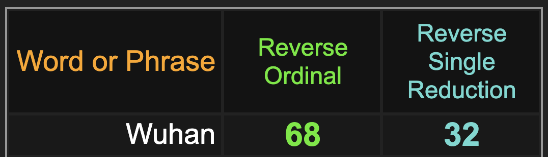 3/25/2020 = 3+25+20+20 = 68