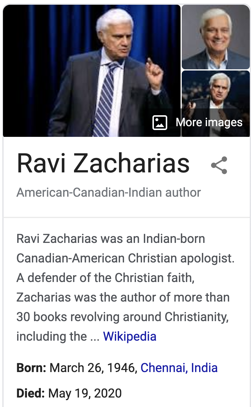 Ravi Zacharias, Christian Evangelist, dead at 74, May 19, 2020, from ‘cancer’