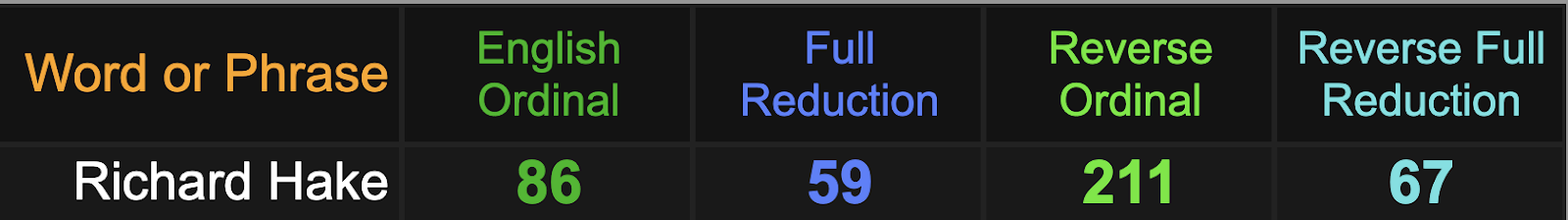 Richard Hake had the wrong name gematria, and for it, he is the latest blood sacrifice in the world of celebrity.