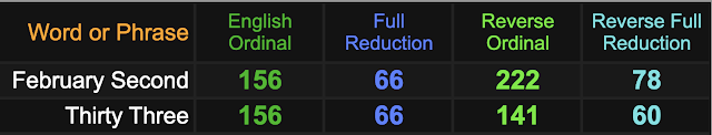 The span of 156-days connects to ‘thirty-three’ and ‘February Second’.