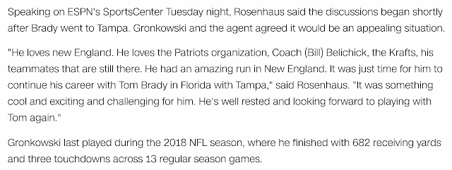 And last, this news comes 1-year and 28-days after Gronk’s retirement, or 56-weeks and days.