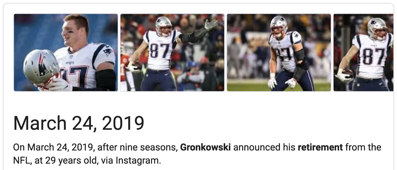 And last, this news comes 1-year and 28-days after Gronk’s retirement, or 56-weeks and days.