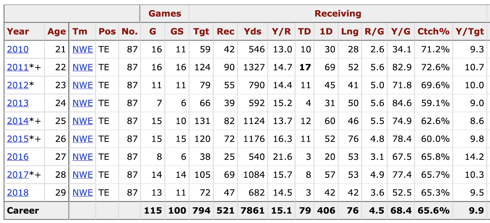 *Gronkowski stats:
