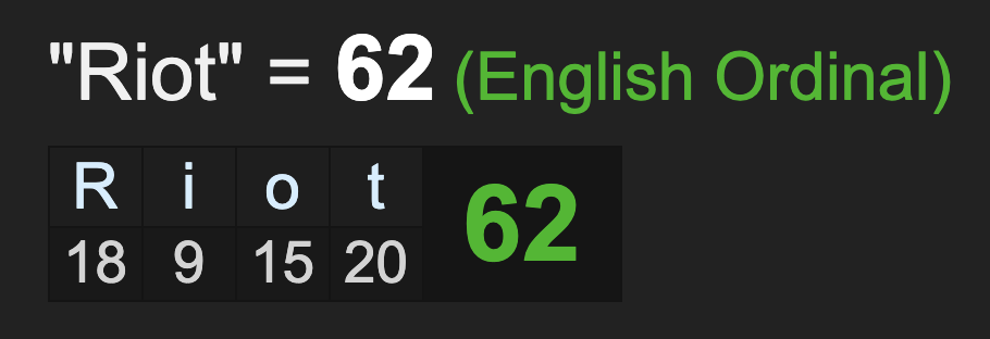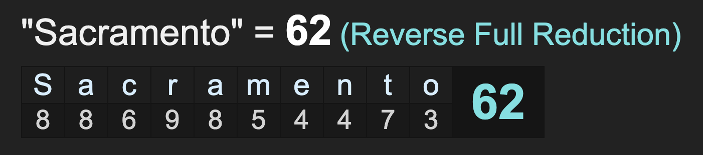 Notice how ‘Sacramento’ sums to 62, like ‘Minneapolis’, ‘Floyd’, ‘officer’, and ‘riot’.
