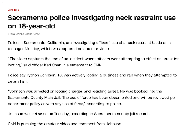 Sacramento police investigating neck restraint used on 18-year-old Tyzhon Johnson, June 4, 2020 news