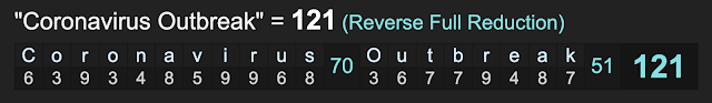It was 9-days later that “the first case of coronavirus” in the U.S. was uncovered, January 21, or 1/21, which is a disease being blamed on bats, as it is bats that are also blamed in the 2011 film Contagion, emphasis on ’11. Keep in mind, 121 has a square root of 11, and 11 is the master number.