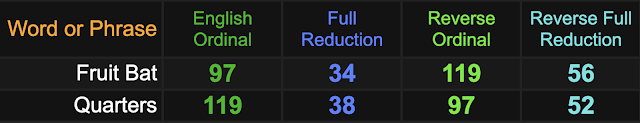 Notice the overlap with ‘fruit bat’ and ‘quarters’.