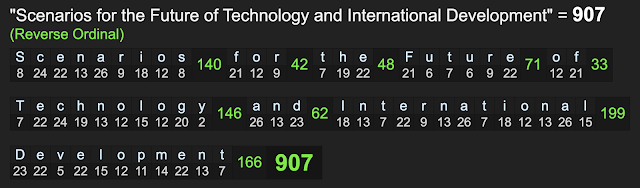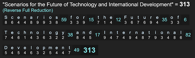 Now to see how this ties in with the contrive coronavirus pandemic, notice the Gematria of ‘Scenarios for the Future of Technology and International Development’.