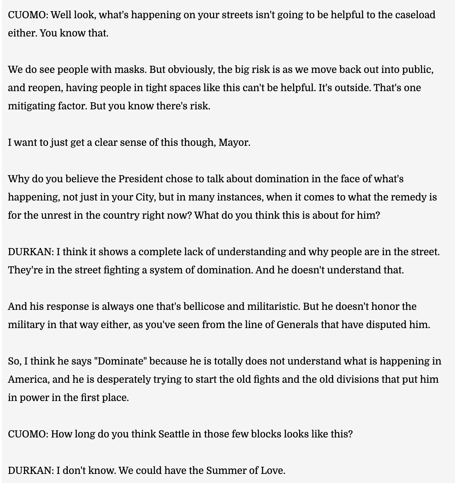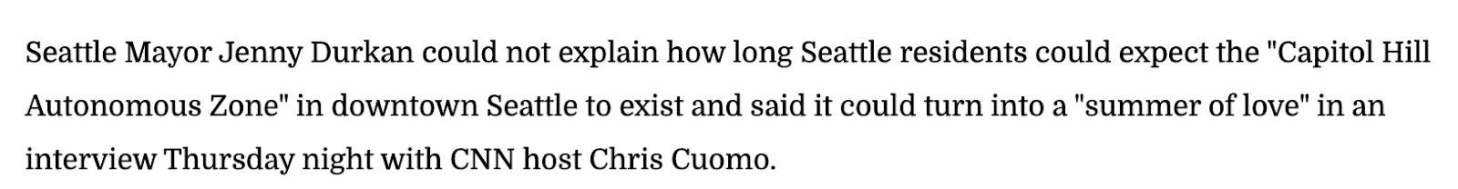 Seattle Mayor Jenny Durkan said 2020 could be the “Summer of Love”, June 11, 2020, prior to July 4 deadly accident of Summer Taylor and Diaz Love