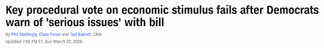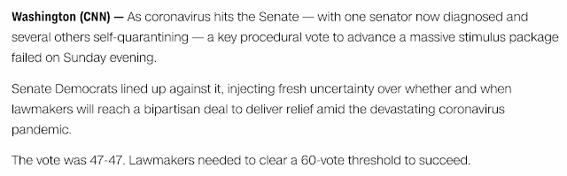 Senate procedural vote on coronavirus economic stimulus tied at 47-47 & Dow futures for March 23, 2020 bottom out at 5%, March 22, 2020 news
