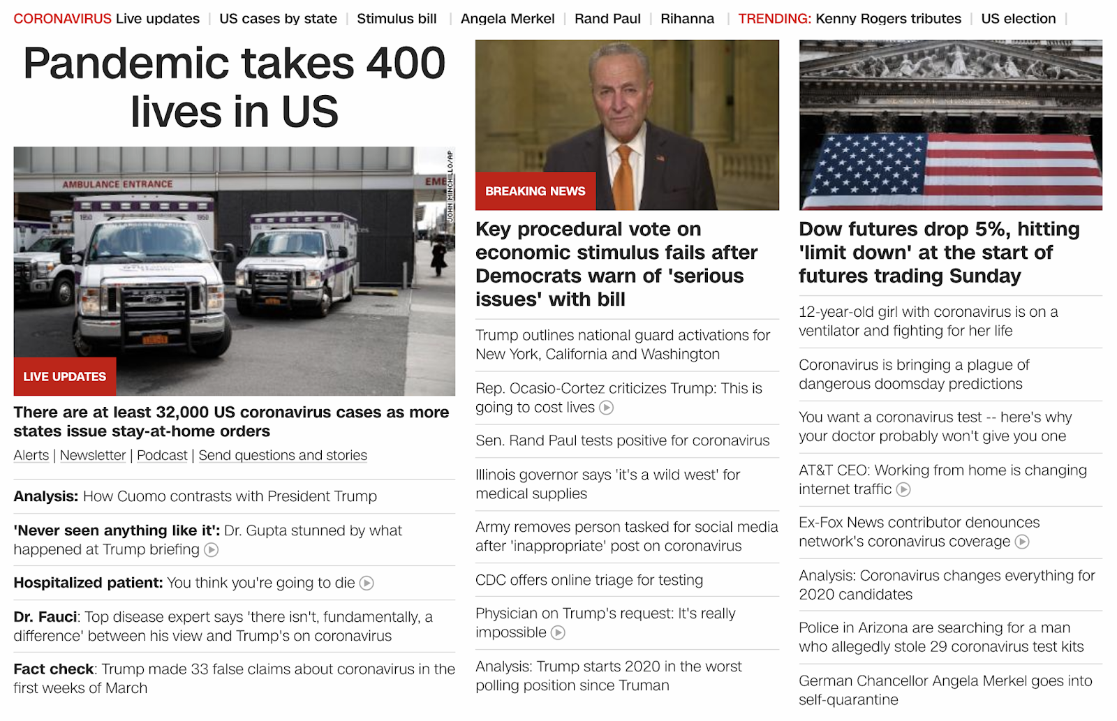 400 lives? Why am I think Dean Koontz’s Wuhan 400? Take a look at these other stories as well, including the 47-47 vote between Democrats and Republicans, and the Dow futures bottoming out.