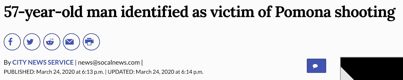 3/23/2020 = 3+23+20+20 = 66 (Homicide = 66)