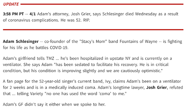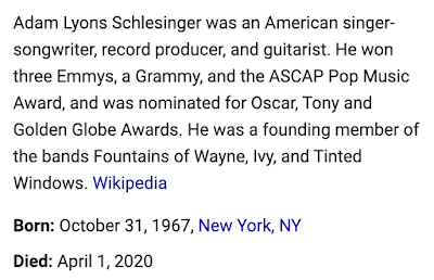 Stacy’s Mom singer, Adam Schlesinger, dead at 52 from coronavirus, April 1, 2020
