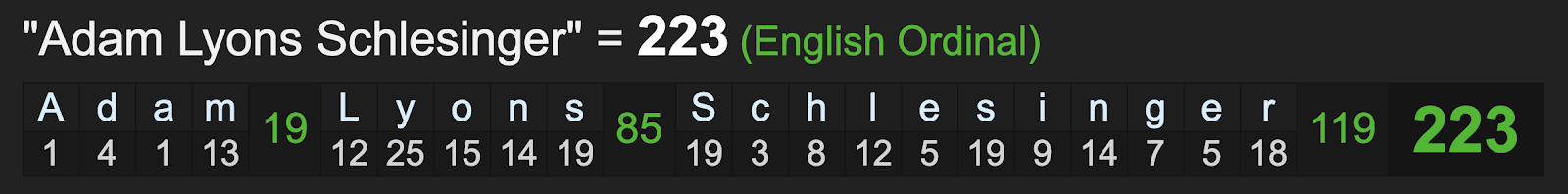 And his full name also equates to 223, like ‘novel coronavirus’.