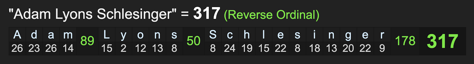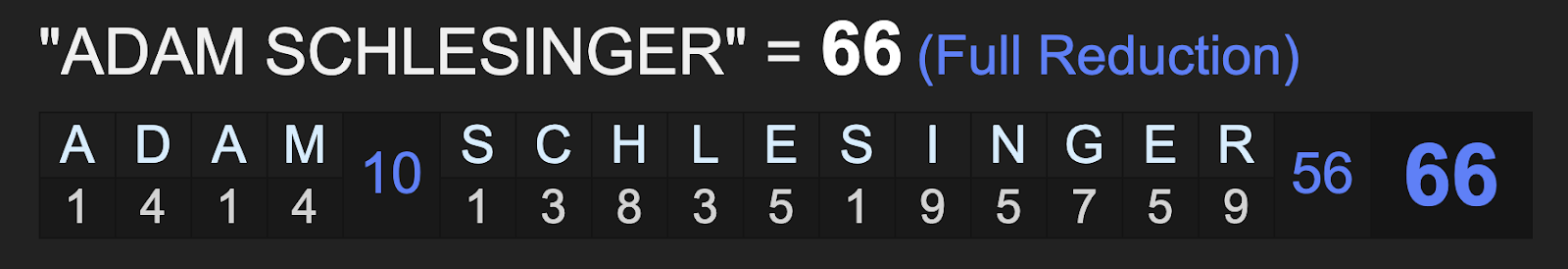 His name, Adam Schlesinger, equates to 66, like ‘corona’.