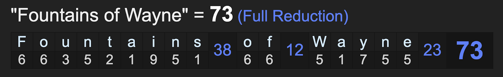 The ban name, Fountains of Wayne’, has ‘sacrifice’ gematria.