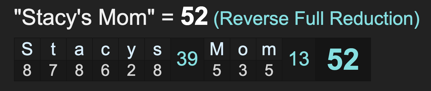 Notice, ‘Stacy’s Mom’ sums to 52, matching his age of death.
