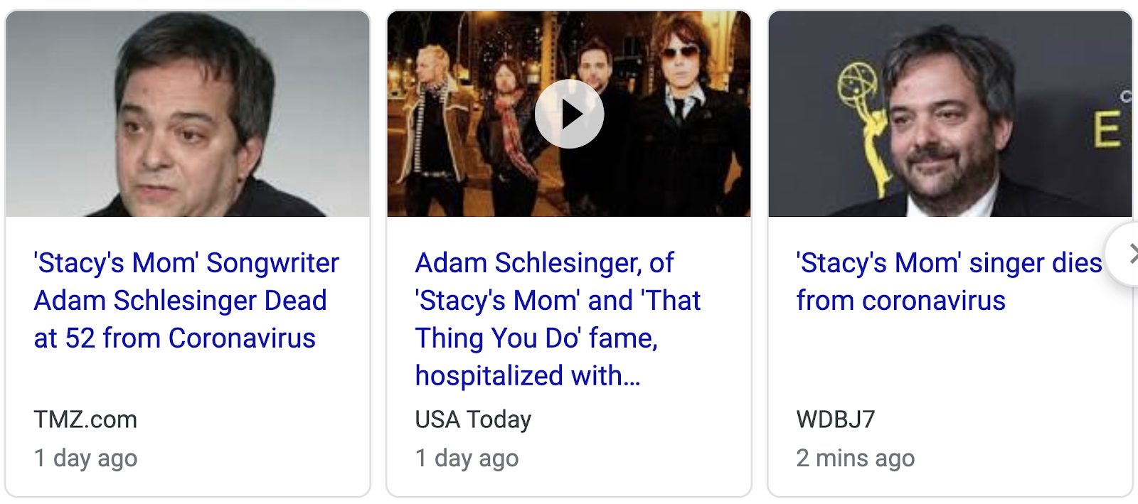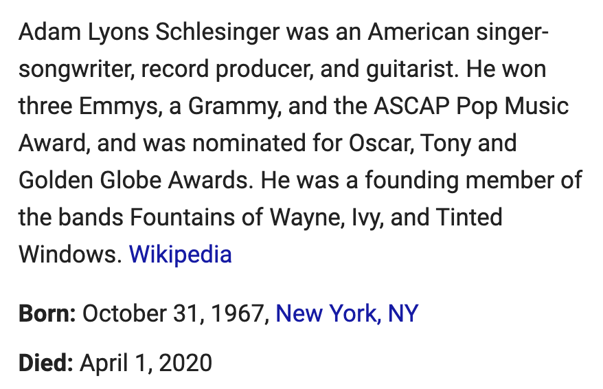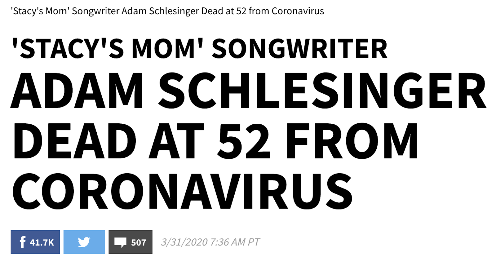 Stacy’s Mom singer, Adam Schlesinger, dead at 52 from coronavirus, April 1, 2020