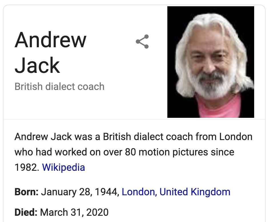 Star Wars actor Andrew Jack, dead from coronavirus, March 31, 2020