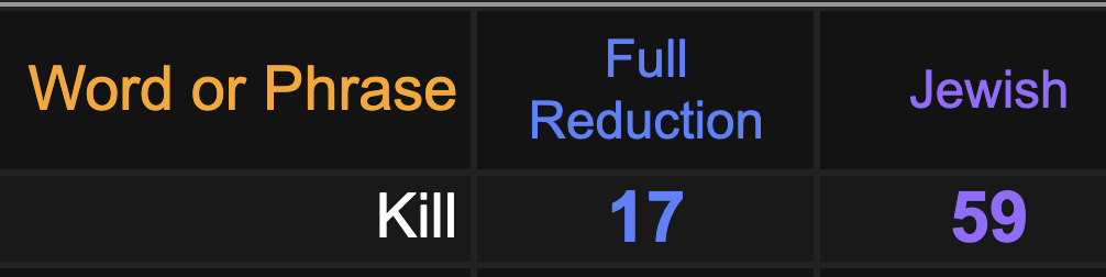 And ‘kill’ sums to 59 and 17, where 59 is the 17th prime.