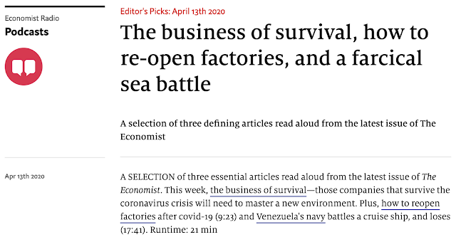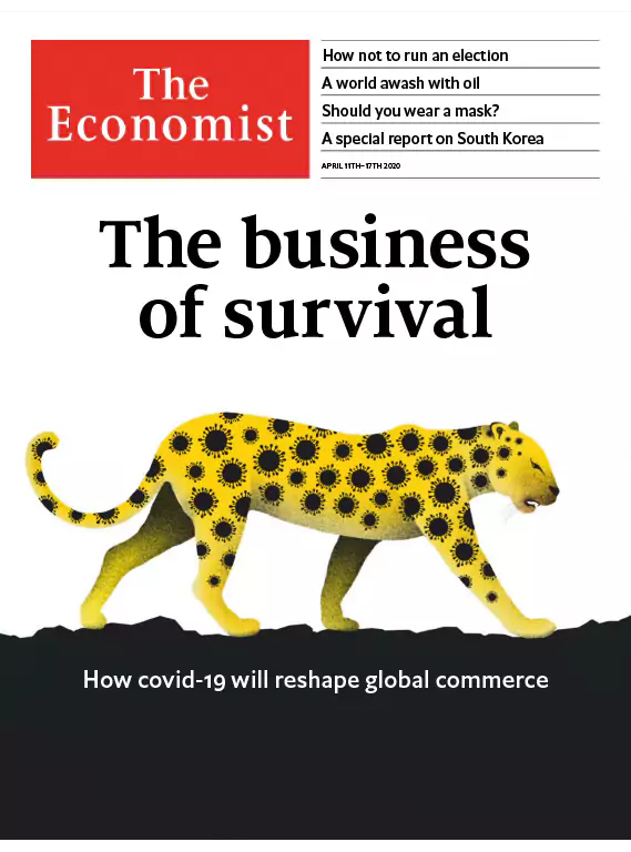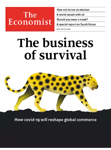 Instead of a tiger with stripes, The Economist gives a cat with coronavirus spots. Just documenting the ongoing symbolism.