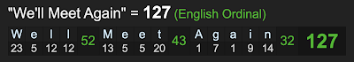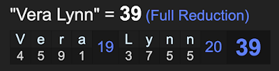 Notice how Vera Lynn sums to 39, going with her 1939 song, the year World War II began, the continuation of the ‘Great War’.