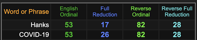 *Coronavirus = 56 (Tom Hanks & Rita Wilson both born in ’56)