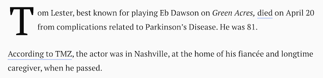 Tom Lester of Green Acres, dead at 81, April 20, 2020
