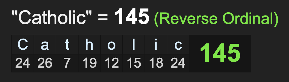 The name of the storm sums to 145, the same as ‘Catholic’.