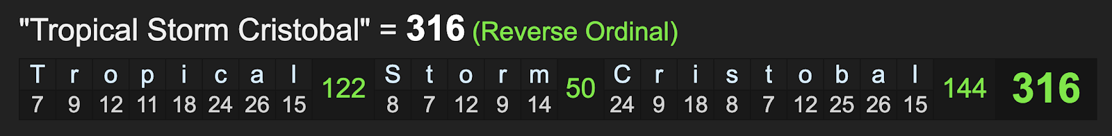 Read about Cristobal forming June 2, 2020: https://gematriaeffect.news/tropical-storm-cristobal-forms-in-the-gulf-of-mexico-june-2-2020-weather-warfare/
